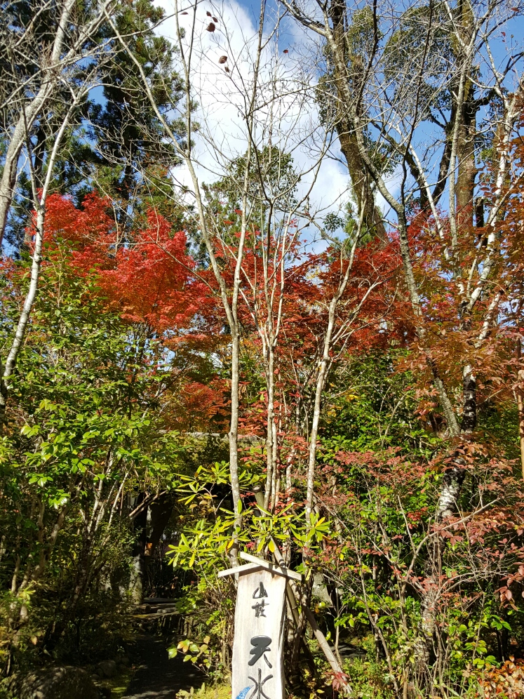 10月の暑さで 今年はあまり期待していませんでしたが 色づいた紅葉が 誇らしげに森をあざやかに 染めてくれました。 日に日に紅く染まる木々の葉を 毎日見守っていられる贅沢に 感謝します。山荘天水のホームページへ PR |