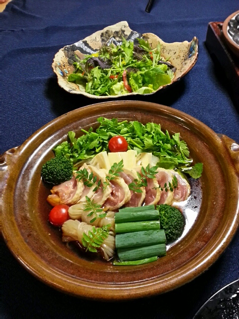 玄関の三つ葉ツツジが 満開になりました。 辺り一面、淡い紫色に染まっています。 森は今 新緑と色とりどりのお花でいっぱいで 私が一番好きな季節です。 そろそろ節句の飾り付けをしています。 ご夕食のお料理も 端午の節句のメニューになりました。 先付けは蓬豆腐 敷き胡麻クリーム 八寸いろいろ お造り お鍋 九州産赤鶏のすき焼き 等々 ボリューム満点です。 ちなみにお野菜は 日田市大鶴産の野菜を使用しています。 そしてデザートは フルーツのゼリー寄せです(^_^) 山荘天水のホームページへ 山荘天水のホームページへ PR   |