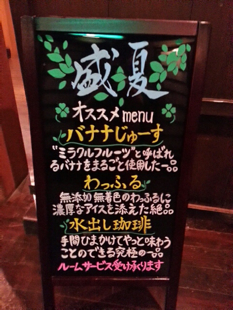 天水の森は 梅雨空がまだまだ続いておりますが 今日、今年最初のセミの声を聞きました。 「夏が来るよ」と 教えてくれているのでしょう。 森のラウンジでは 夏の新メニューを始めました。 まずお薦めは『バナナジュース』です。 バナナを丸ごと一本と 小国ジャージ牛乳を使っています。 今年作った柚子蜜で 『柚子スカッシュ』 『しそジュース』も数量限定で お出ししています。 スイーツでは 『ワッフルセット』が 早くも人気です。 テラスの心地よい緑の風も ご馳走です(^_^) 山荘天水のホームページへ 山荘天水のホームページへ PR |
