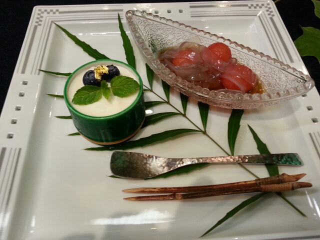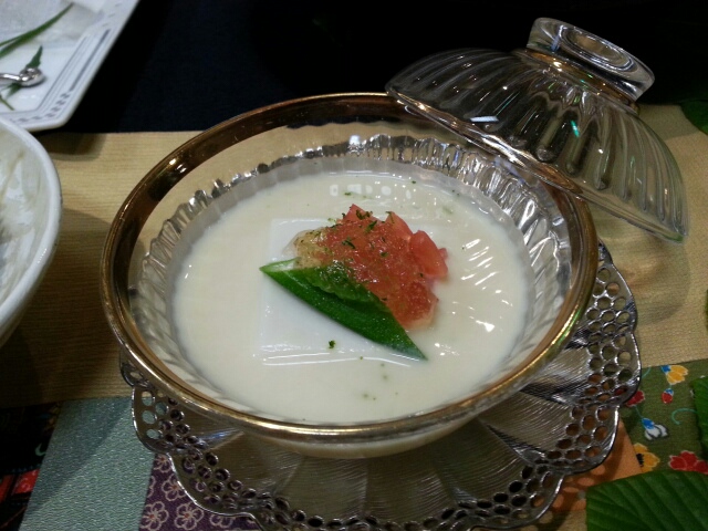 天水の森は濃い緑に覆われました。 今年は一段と葉の付きもよく 木々たちは元気に育っています。 玄関も見えないほど茂りました。 7月に入って お料理も初夏のメニューになりました。 いくつかご紹介させて頂きます。 まず『馬鈴薯のすり流し』 『うなぎの飯蒸し』 『無花果と白ダツの胡麻クリーム』 胡麻クリームは時間をかけて じっくり練り上げた自家製です。 『茄子鴫(しぎ)焼き』 デザートは和と洋のスイーツ 『葛切りとパインのフロマージュ』 葛切りは吉野本葛を使用して それに今話題の日田スイカを入れました。 日田スイカは黒蜜に負けない糖度です。 今回も料理人が時間と手間をかけて 一つ一つ手作りしております。 心を込めた初夏のお料理です(^_^) 山荘天水のホームページへ 山荘天水のホームページへ PR |