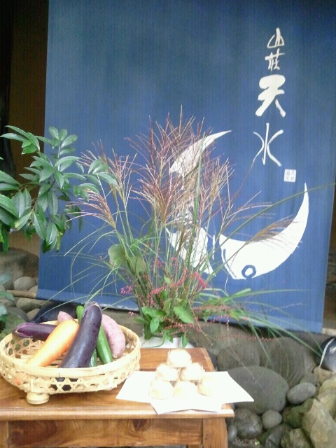 小雨の中 ススキを採ってきて 玄関に飾りました。 お野菜と饅頭をお供えして 後はお月様が顔を出してくれるのを 待つだけです。 シトシト降る雨に 中秋の名月を諦めていましたが 夜になって夜空を見上げると お月様が顔を出してくれました。 木々の間から見える名月は とても綺麗で お客様と一緒に鑑賞しました。 都会のお客様にとって 森の中で見る月は 空が澄みわたって 特別、綺麗に見えるとのことです。 月見風呂を楽しまれたお客様も 少し興奮気味で 「素晴らしいお月見が できました」と 言ってくださいました。 本当に素敵な十五夜の お月見でした。 そして 少しずつ紅葉している 天水の森が 皆様のお越しを お待ちしております(^.^) 山荘天水のホームページへ 山荘天水のホームページへ |
