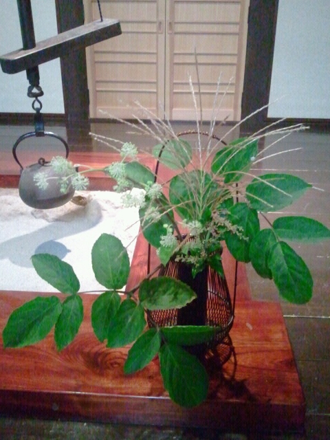 残暑お見舞い申し上げます。 夏の空には、真っ白な入道雲が とてもキレイで似合います。 まだまだ夏真っ盛りです。 それでも、天水の森を散策すると 秋の草花が咲いていました。 <キンミズヒキ> 雑草に紛れて 咲いていました。 <タマガヤツリ草> 森の湿地で太陽を浴びて たくさん咲いています。 さっそく生けてあげました。 <ヤブラン> 木陰でひっそりと 咲き始めています。 天水の森は少しずつ 秋が近づいているようです(^.^) 山荘天水のホームページへ 山荘天水のホームページへ |