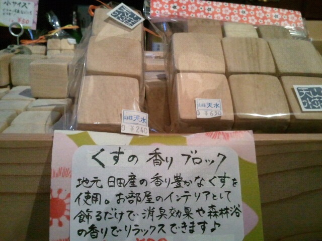 地元産の商品や手作りの商品を 揃えています。 こちらは楠の木のブロックです。 木のいい香りがします。 着物の生地を貼った 手作りのスイッチカバーは お部屋の雰囲気を 変えてくれます。 のり豆と吉四六のりは 山荘天水の朝食にも お出ししている 人気の商品です。 その他にも 季節ごとに色んな商品を 揃えておりますので 覗いてみてくださいませ(^.^) 山荘天水のホームページへ 山荘天水のホームページへ |