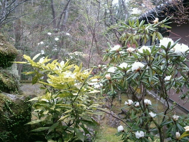 早咲きの白いシャクナゲが 咲き始めました。 毎年、ここだけは 早々と咲くのですが 不思議です。 今年は花の付きが多くて 咲き揃ったら 白い手まりのような花が 見事でしょう。 敷地内に入ると お花のトンネルが お出迎えです。 お風呂だけでも、コーヒーだけでも お気軽にお立ち寄り下さい(^.^) 山荘天水のホームページへ 山荘天水のホームページへ |