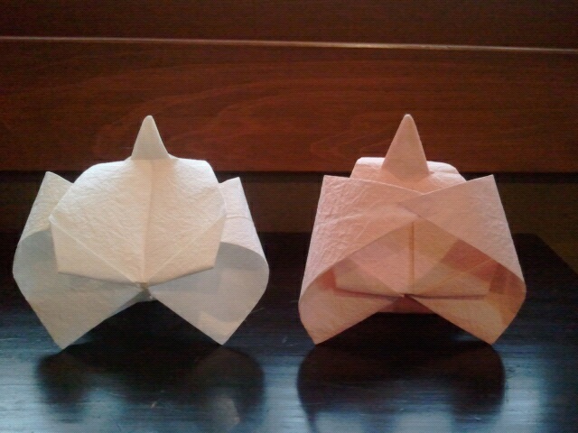 お雛様を手作りしました。 作り方のレシピを見ながら 悪戦苦闘した結果の 出来栄えです。 お客様のご希望があれば お雛様の折り方を お教えしたいと思います。 お客様のお部屋にも お雛様の掛け軸をかけて 天水の森のひな祭りです。 山荘天水のホームページへ 山荘天水のホームページへ |