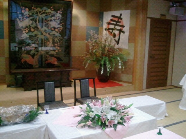 なりました。 お泊まりのお客様が ほぼ貸切りで 御両家の披露宴が 催されました。 御両家の御親戚だけの アットホームな 披露宴で、 手作りの温かい雰囲気に 包まれて 新郎新婦のお二人は とってもお幸せそうでした。 私どもスタッフも お手伝いをさせて頂きながら 幸せな気持ちにさせて頂き 感謝感謝の一夜でした(^.^) 山荘天水では 冠婚葬祭の宴にも ご利用いただけます。 詳しくは TEL 0973-57-2424 山荘天水のホームページへ 山荘天水のホームページへ |