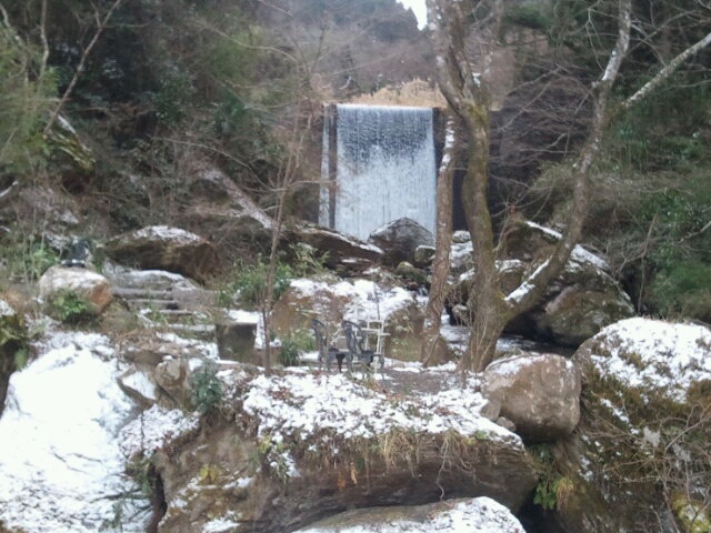 『五馬媛(いつまひめ)の森』へ 足を運びました。 朝方降った雪で 森の岩が白くなっていました。 雪景色もやはり 神秘的です。 最低気温が氷点下7℃くらいまで 下がったでしょうか? 霜柱が寒さを物語っています。 わざわざ遠くから 天水の森の雪景色を 見にこられたお客様も いらっしゃいました。 お昼過ぎまで 雪が残っていたので 大満足でお帰り頂いたようです。山荘天水のホームページへ |