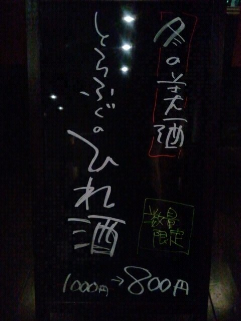 今日からひれ酒を始めました。 臼杵のとらふぐのひれ酒です。 お酒は大分の 『西の関』を使っています。 香ばしいまろやかな味が 体の真まで温めてくれますよ! 1月いっぱい迄の 限定商品です。 今なら一杯1,000円を 800円でお呑み頂けます。 ラウンジでは勿論 ルームサービスもOKです。 どうぞ寒い夜に 冬の美酒はいかがでしょうか(^.^) 山荘天水のホームページへ 山荘天水のホームページへ PR |