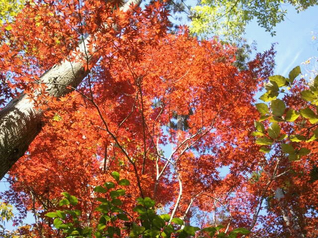 いいお天気でした。 日に日に 色を染めていく木々たちです。 周りが杉山なので 天水の森の紅葉は 赤がとても浮き立ちます。 まだまだ緑の方が多いようですが 色を染め変わりゆく 森の景色を 見るのが楽しみです! お客様が写して頂いた 天水の森の紅葉の写真で 『写真展』ができたらいいなと 願っております(^.^) 山荘天水のホームページへ 山荘天水のホームページへ |