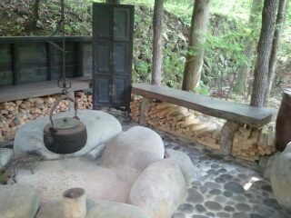 囲炉裏小屋があります。 大きな囲炉裏と大きな鉄瓶がある 開放的な小屋です。 一度お座り頂いて、 森の音を聞いてみませんか! こんなことも『あり』ですよ♪ 天水のホームページへ 山荘天水のホームページへ |