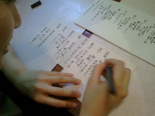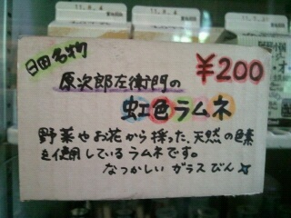 『虹色ラムネ』です。 地元日田の名物で 天然水を使い、野菜やお花の 色素で色を付けています。 もうひとつ日田の特産品 日田杉の下駄です。 夏はカランコロンと 下駄の音を鳴らして 夕方の散歩はいかがですか? 売店の武ちゃんが 夕食のお品書き作成中に お邪魔しました。 どうぞ一度覗いてくださいませ(^.^) 山荘天水のホームページへ山荘天水のホームページへ |