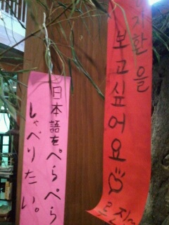 さがりました。 一つ一つ見させて頂くと 小さいお子様から80歳代の方まで それぞれの想いのお願い事が 書いてありました! 皆様の願い事が どうか叶いますように! 山荘天水のホームページへ |