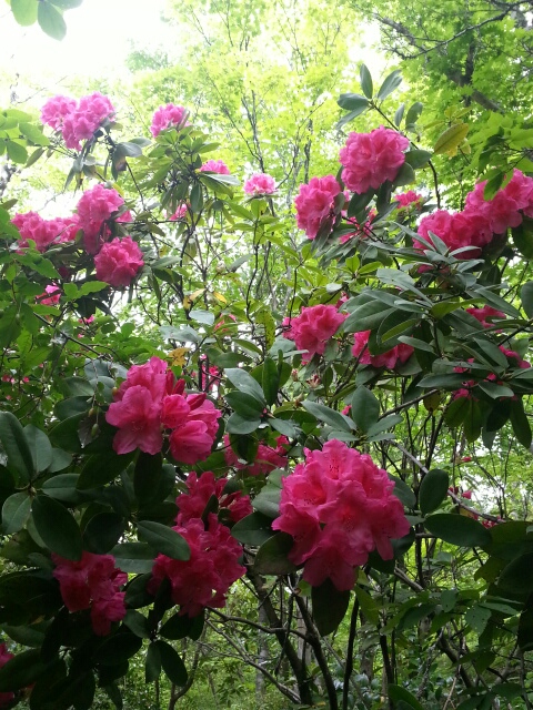 吹き抜けています。 そんな森で 鮮やかな西洋シャクナゲが 満開になりました。 緑の木々の中で 一際紅く 大きな花が 重たそうにいくつも咲きました。 その他に お客様が楽しみにされている カルミアも満開です。 金平糖のような 可愛い花は 多くのお客様に人気があります。 四季折々に 目を楽しませてくれる花たちを お部屋に飾るのも 楽しみです(^_^) 山荘天水のホームページへ  |