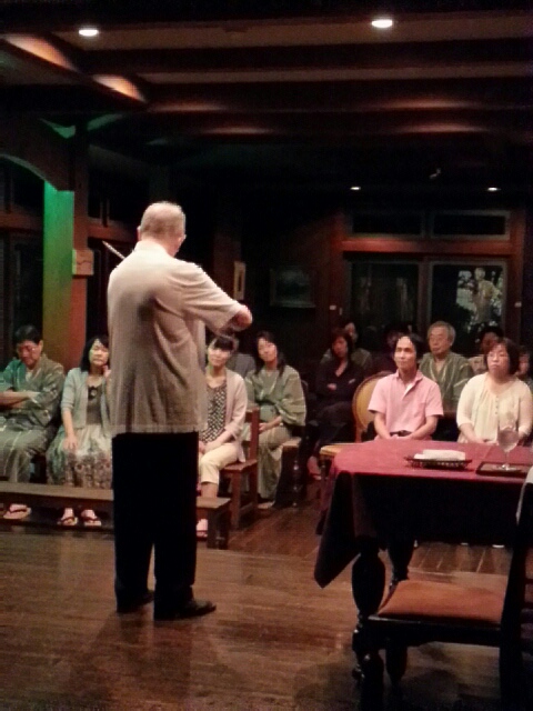 今宵ラウンジにて サプライズのミニコンサートが 行われました。 昨日からお泊まり頂いてる ドイツのエッセン大学教授の 『ヴェセリン・パラシュケボフ氏』です。 バイオリンのソロ演奏をして頂きました。 バイオリンの生演奏は 絶妙な音色を奏でていて 木造のラウンジに響きわたり 優しい優雅な空間になり とっても素晴らしいひとときでした。 本日のお泊まりのお客様も このサプライズの演奏に 感激されていたようです。 感動の一夜を ありがとうございました。 『ヴェセリン・パラシュケボフ氏』に 感謝の意を表します。 山荘天水のホームページへ |
